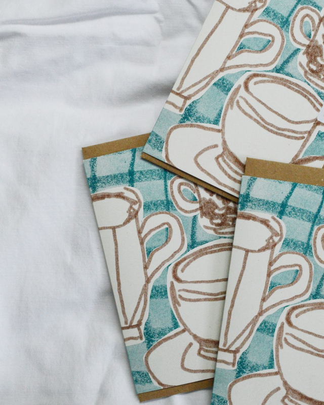 A6 Risograph Greeting Card, Teacups